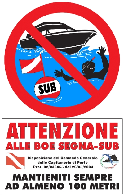 L’impegno che in questo momento più ci sta a cuore è lanciare la campagna per la sicurezza in mare di chi ,praticando sia la pesca che lo snorkeling ,vuole godere tranquillamente delle bellezze dei nostri fantastici fondali.Attraverso locandine, adesivi,tshirt e grazie all’aiuto di tutti coloro che adotteranno il nostro manifesto vogliamo sensibilizzare l’attenzione di coloro che navigano a mare affinché siano rispettate le leggi vigenti.